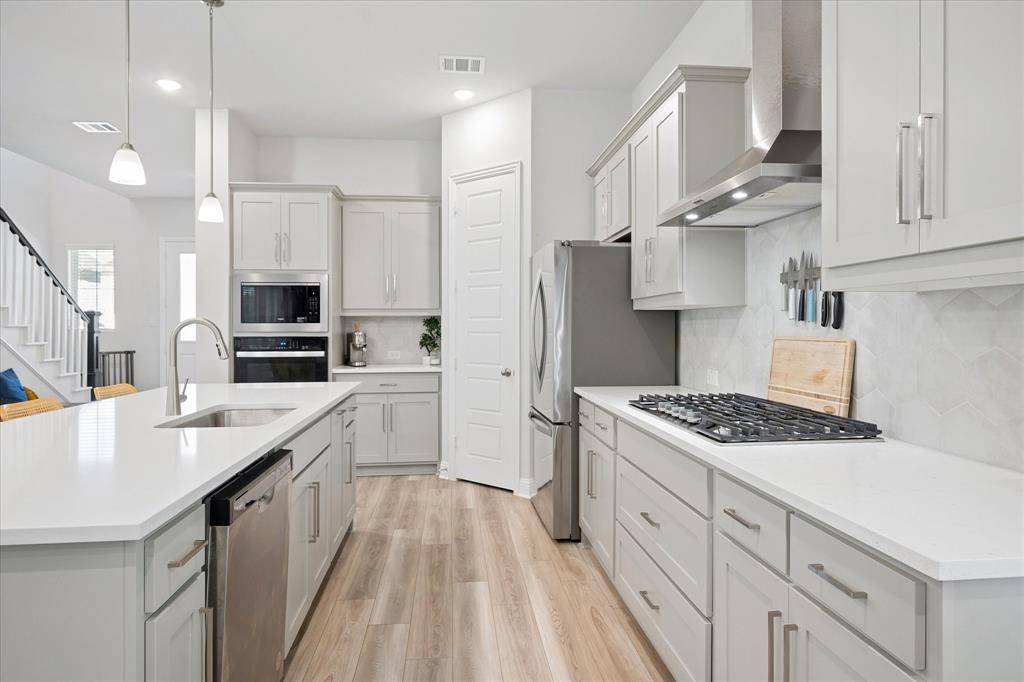 Built 2024 by Mattamy. This 2 story 3 bedroom, 2.5 bath home is just steps from the lake with park views. Upgraded gourmet kitchen with quartz countertops, shaker cabinets, gas cooktop, and built in Whirlpool appliances. Tankless water heater. Extra large primary bedroom with sitting area, spacious closet and a balcony. Oversized 2 car garage has room for bikes, kayaks. Enjoy parks, hike and bike trails, a dog park, fishing jetty and restaurants and shops moving into the community. Enjoy the sunset over Lake Ray Hubbard. Walk or golf cart to the marina, huge resort style lagoon, fountain show, surf and beach club, shopping, dining and more entertainment. Easy travel on I30 to Dallas city center.
